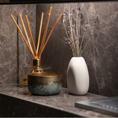 - Choose items in a single color scheme and style